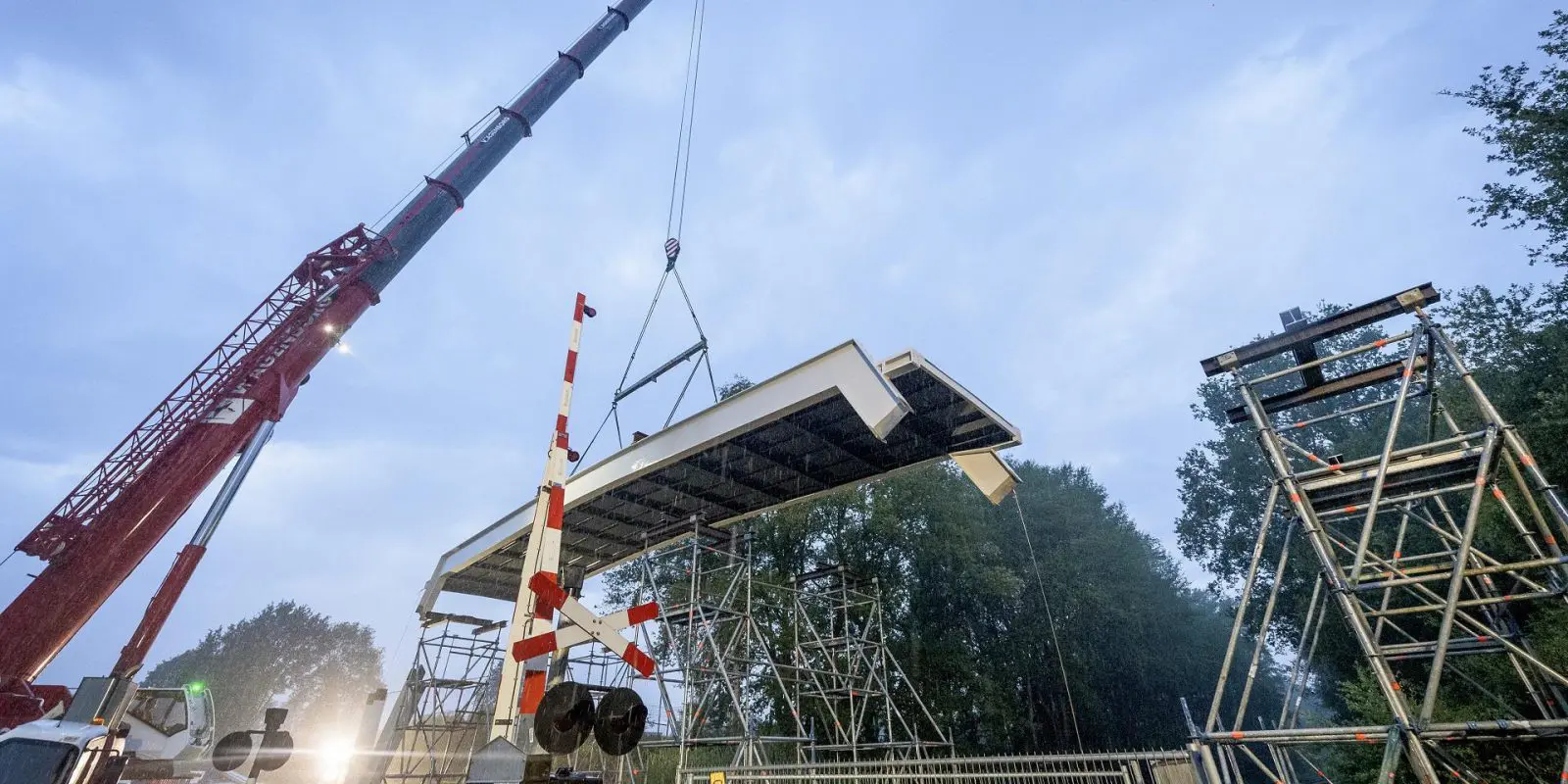 In de nacht van 14 op 15 juni is de nieuwe stalen fietsbrug aan de Euregioweg succesvol over de spoorlijn Enschede gehesen.