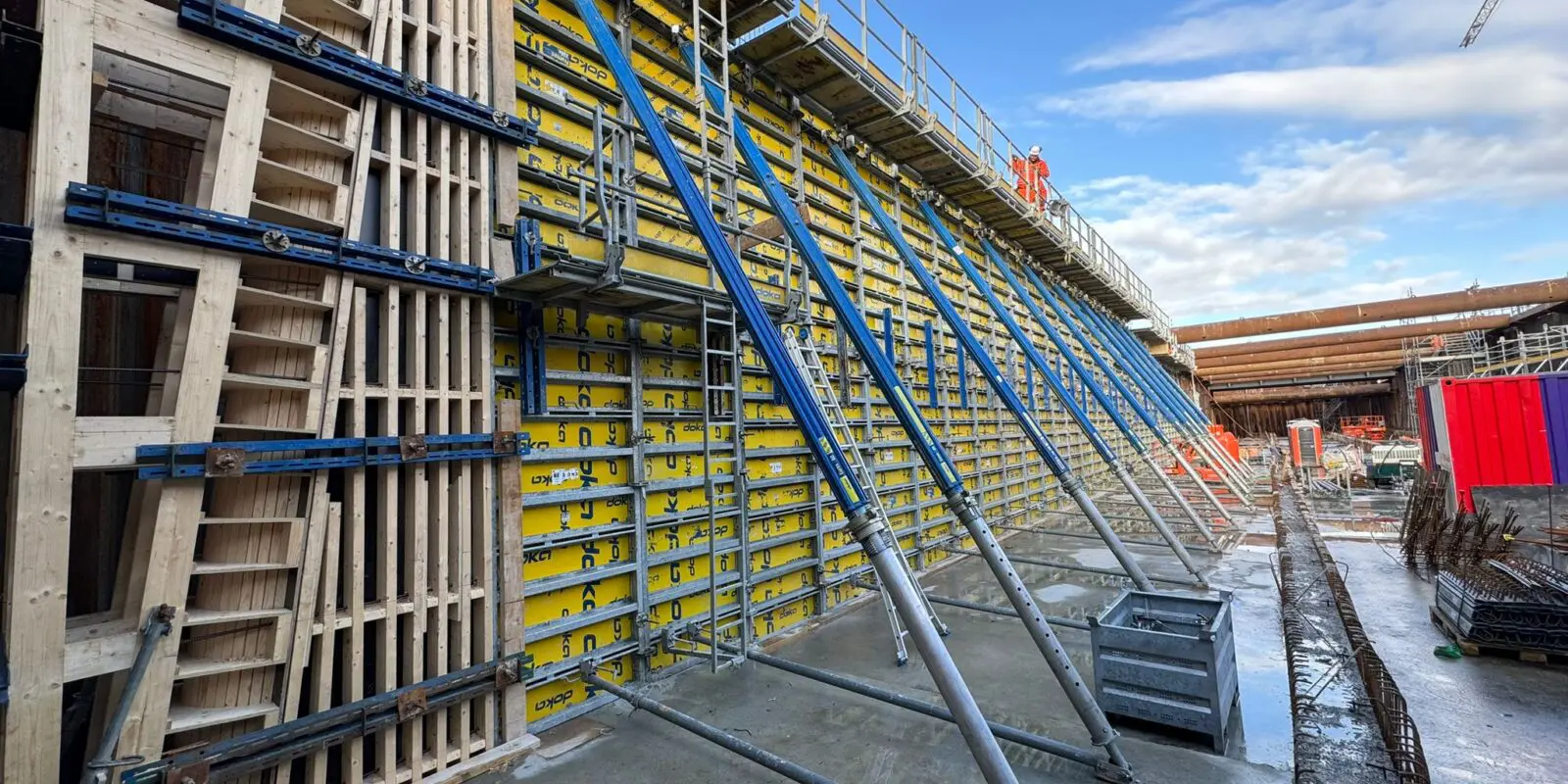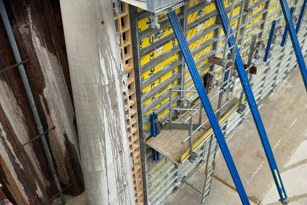 Dankzij de partners Verreiker Verhuur Noordenveld en Kuiphuis Kraanverhuur staan op het project een elektrische verreiker en een elektrische torenkraan voor het inhijsen van de bekisting en staalwapening voor de wanden. De verreiker is zelfs één van de grootste elektrische in zijn soort. “’s Nachts laadt de machine haar batterijpakket op, waarmee ze een dag of twee kan werken”, vervolgt Marcel. “De definitieve elektriciteitsaansluiting voor het gemaal hebben we voor dit doel al aangelegd.”